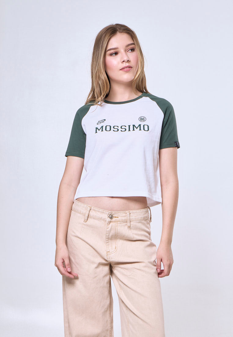 Mossimo's Alara tee combines timeless style with contemporary silhouette. The classic raglan sleeves provide comfortable mobility, while the cropped fit offers a modern, flattering cut. Crafted in crisp white with striking green accents, this versatile piece transitions seamlessly from casual weekends to layered styling.