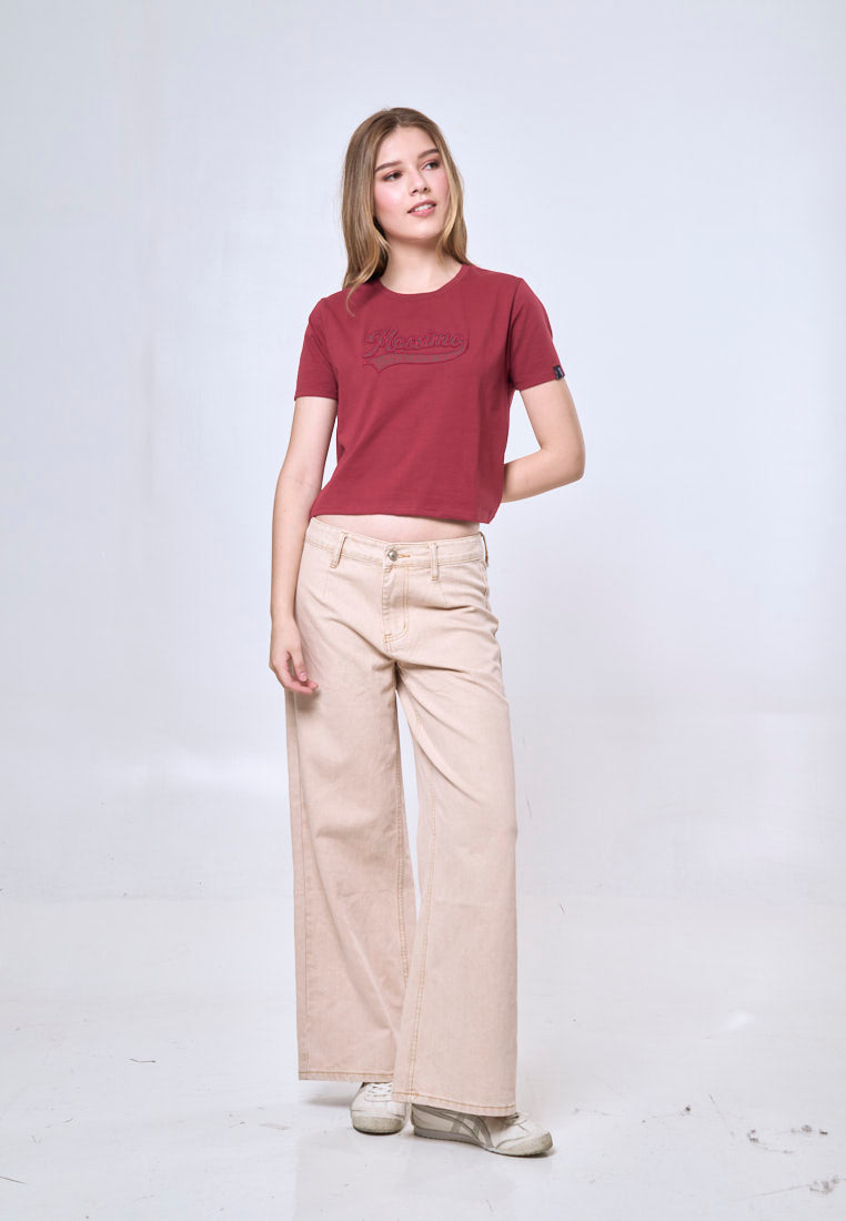 Mossimo Arabella Maroon Classic Cropped Fit Tee The Arabella tee delivers timeless style with a contemporary silhouette. Crafted for versatility, this maroon classic features a cropped fit that flatters various body types while maintaining a polished appearance.