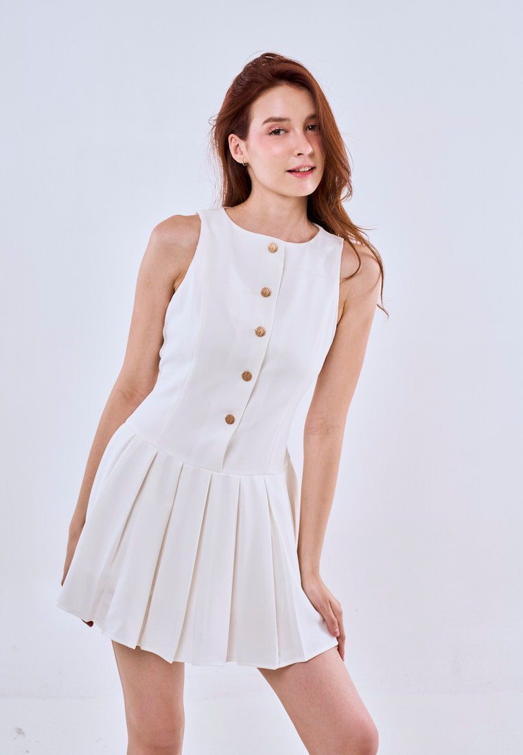 Mossimo Aria White Halter Button Down Pleated Mini Dress For Women