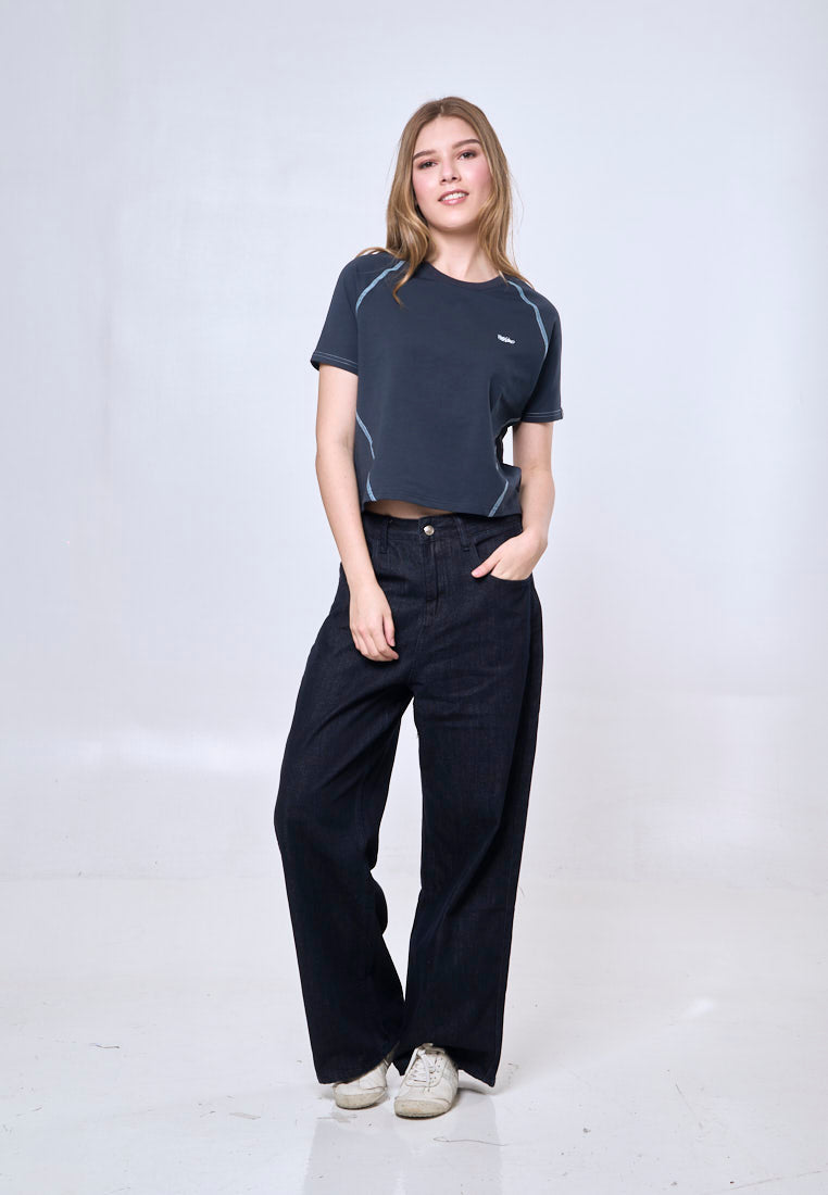 Mossimo Astrid Blue Classic Cropped Fit Tee Elevate your casual wardrobe with this expertly crafted cropped tee. The Astrid features a refined silhouette that balances contemporary styling with timeless versatility. Cut in a classic fit through the shoulders and chest, it tapers subtly at the hem for a modern cropped length that flatters various body types.