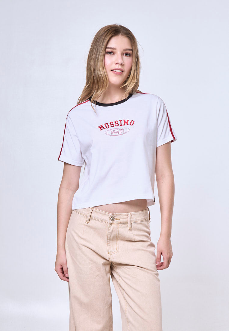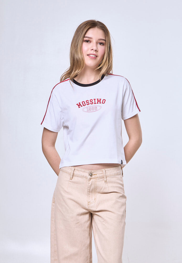 Mossimo Brisa White Classic Cropped Fit Tee Elevate your everyday essentials with this expertly crafted cropped tee. The Brisa delivers a refined silhouette through its precisely tailored cropped fit, offering a contemporary take on the classic white tee.