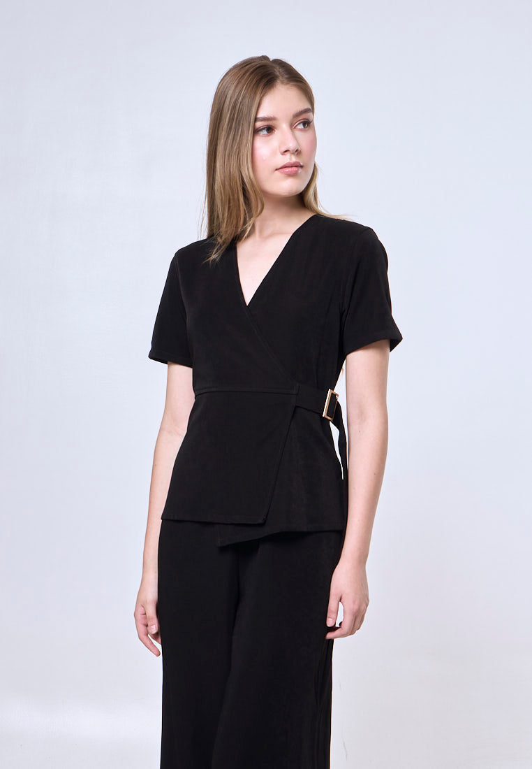 Mossimo Cali Black Wrap Jumpsuit Elevate your wardrobe with this sophisticated wrap jumpsuit, designed for the modern woman who values both style and versatility. The classic black silhouette features a flattering wrap front that defines the waist and creates an elegant drape, while the full-length cut offers a polished, put-together aesthetic suitable for both professional and social occasions.