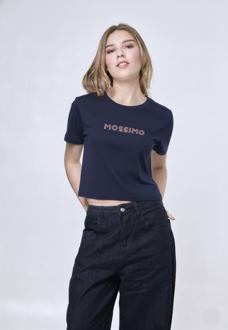 Mossimo Calliope Dark Blue Classic Cropped Fit Tee Elevate your everyday wardrobe with this expertly crafted cropped tee. The Calliope features a refined dark blue hue that pairs effortlessly with any ensemble, while the classic cropped silhouette delivers contemporary style with timeless appeal.
