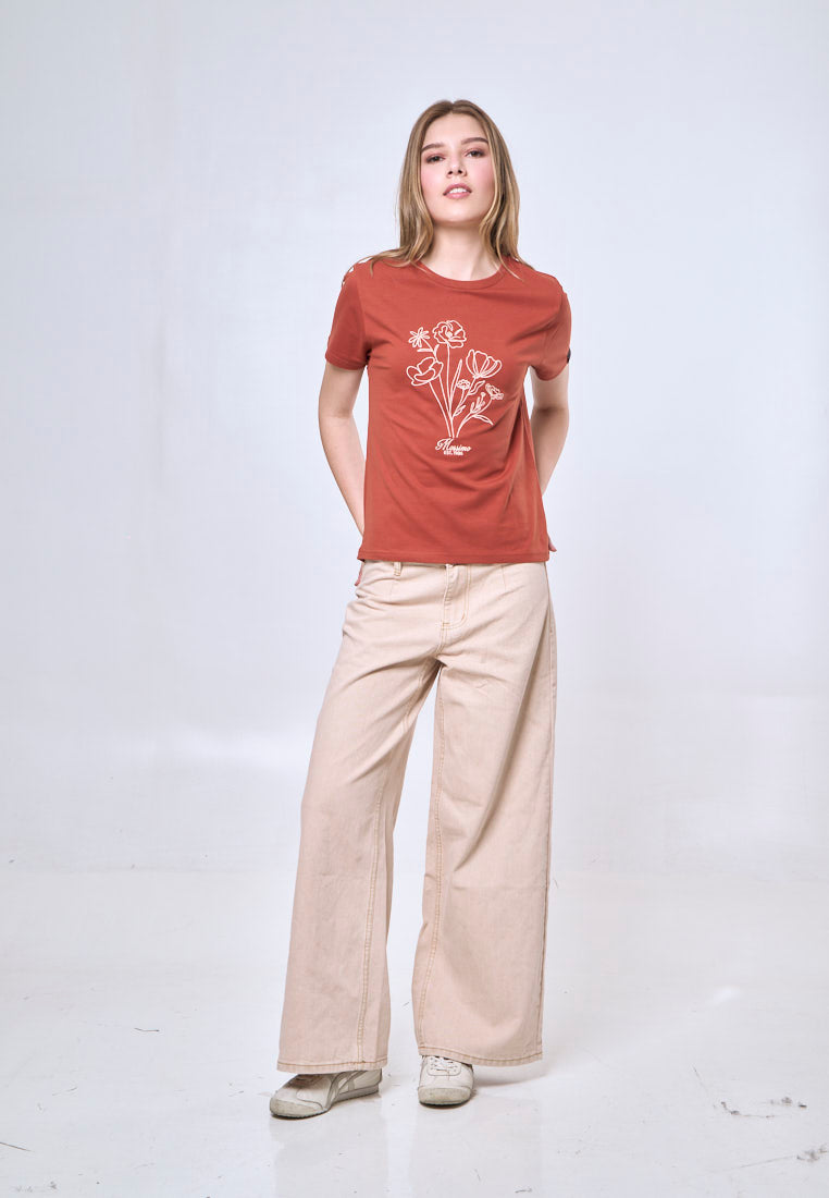 Mossimo Ciara Rust Classic Fit Tee The Ciara tee delivers timeless versatility in a sophisticated rust hue. Engineered with a classic fit that flatters without excess fabric, this essential piece transitions seamlessly from casual weekends to layered workwear. The structured construction maintains its shape through repeated wear and washing, while the neutral rust tone pairs effortlessly with your existing wardrobe.