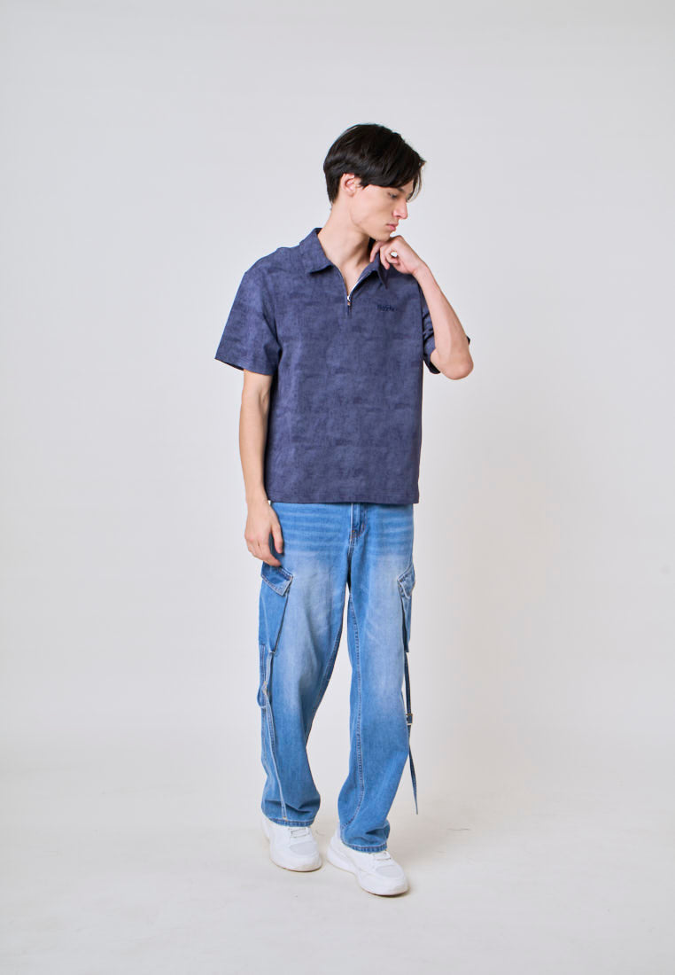 This navy blue polo shirt by Mossimo Levi offers both comfort and style. Made with soft and breathable fabric, it features a unique tie dye design. With a relaxed fit and contemporary design, this shirt is perfect for any casual occasion.
