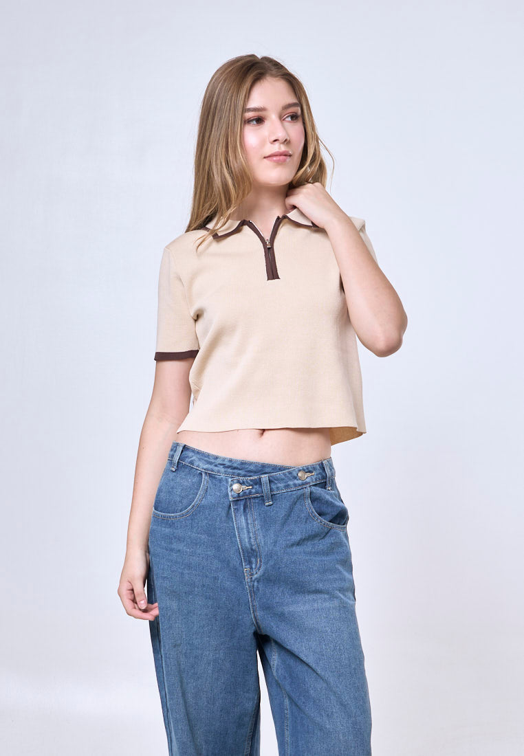 Mossimo Elizabeth Pale Khaki Knitted Zip Up Top Fashion For Women