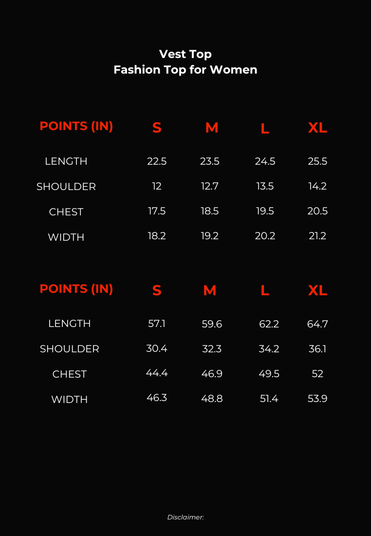 Please note that there might be a slight variance of approximately ± 1 inch in the size guide provided.
