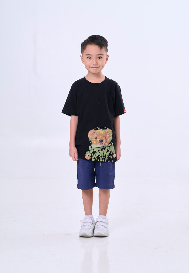 Introducing the Mossimo Kids Black Unisex Mossybear Basic Graphic Tshirt—a wardrobe essential designed for young wearers seeking comfort and style. Crafted from quality fabric, this tee features the iconic Mossybear graphic that appeals to kids of all preferences. The classic black colorway pairs effortlessly with any outfit, making it ideal for everyday wear, casual outings, or layering.