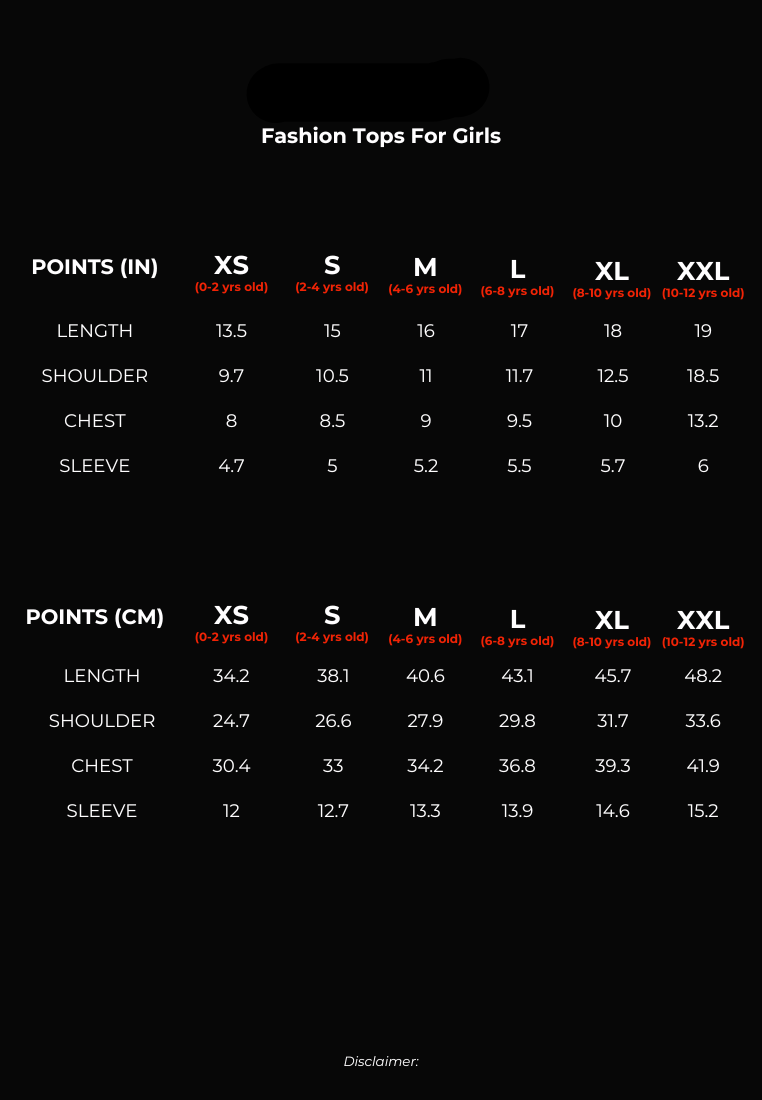 Please note that there might be a slight variance of approximately ± 1 inch in the size guide provided.