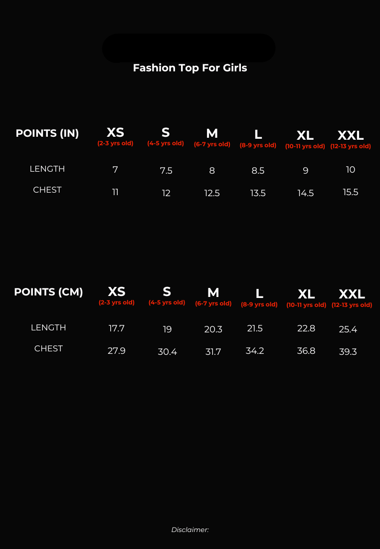 Please note that there might be a slight variance of approximately ± 1 inch in the size guide provided.