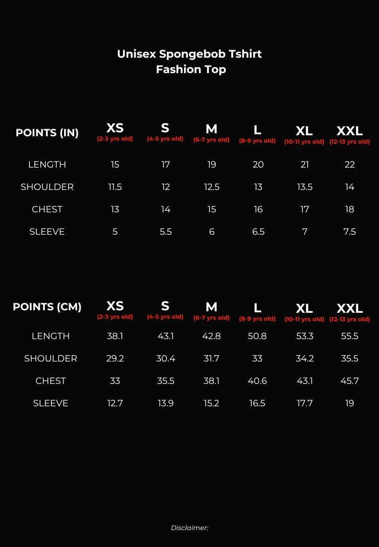 Please note that there might be a slight variance of approximately ± 1 inch in the size guide provided.