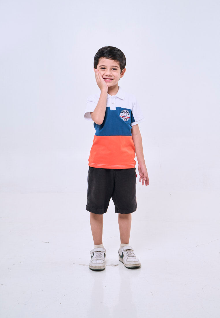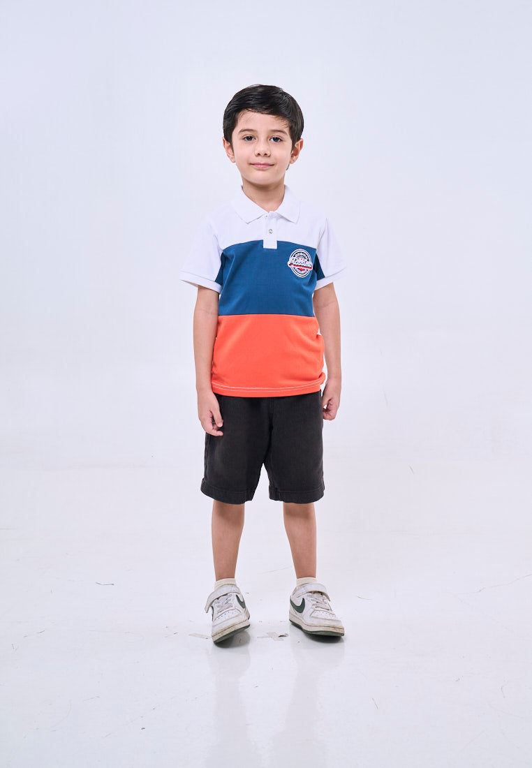 Mossimo Kids White Blue Sporty Polo Patch Shirt