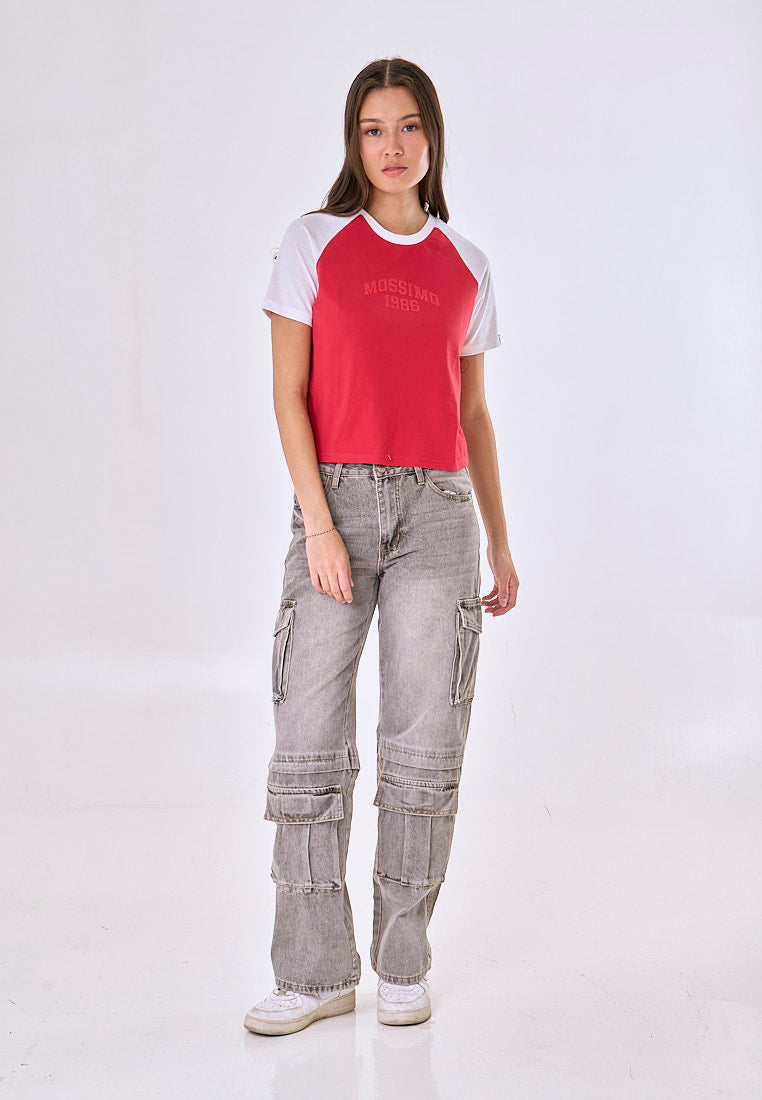 The Mossimo Martha Red Raglan Classic Cropped Fit Tee combines a timeless raglan sleeve design with a contemporary cropped silhouette for a refined yet casual look. Crafted to ensure a comfortable fit, it allows ease of movement while maintaining a stylish shape.