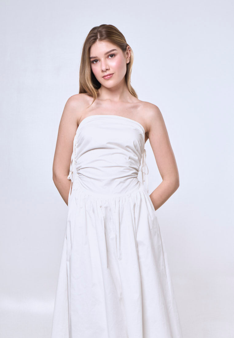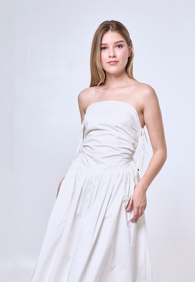 Mossimo Minerva Off White Shirred Midi Dress Elevate your wardrobe with the Minerva, a sophisticated midi dress that seamlessly transitions from day to evening. The off-white hue provides versatile styling options, while delicate shirring at the bodice creates flattering definition and subtle texture.