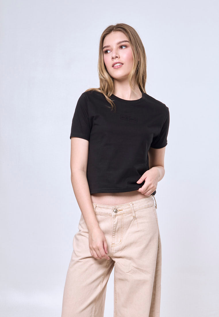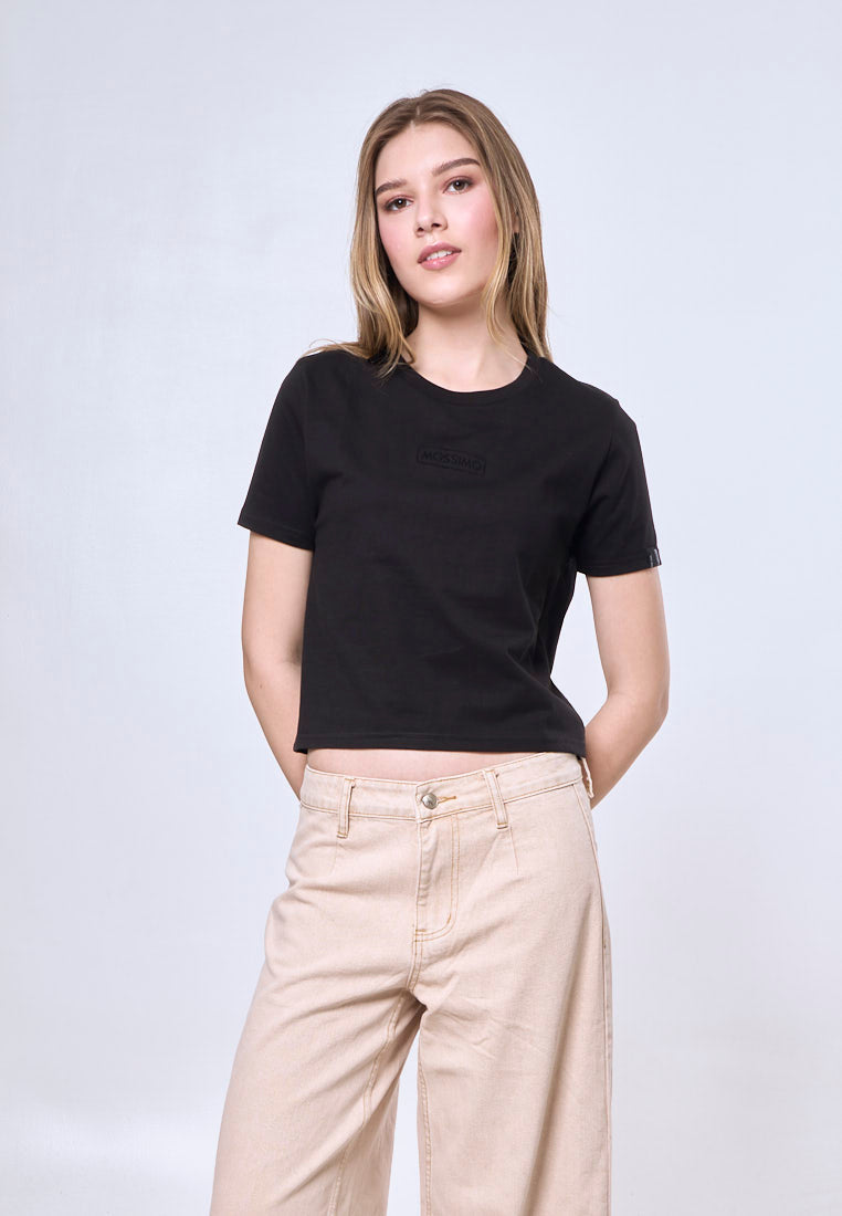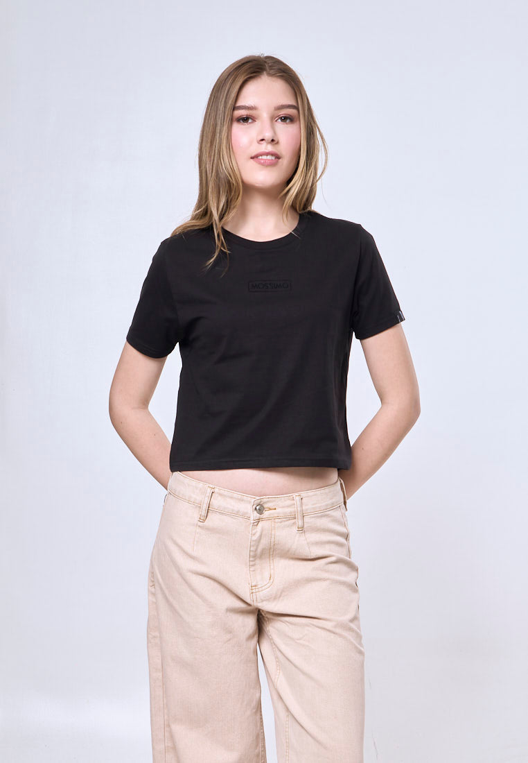 Mossimo Rachel Black Classic Cropped Fit Tee The Rachel tee delivers timeless versatility with its cropped silhouette and refined fit. Crafted for everyday wear, this black essential features a clean, structured design that works seamlessly across casual and layered styling.