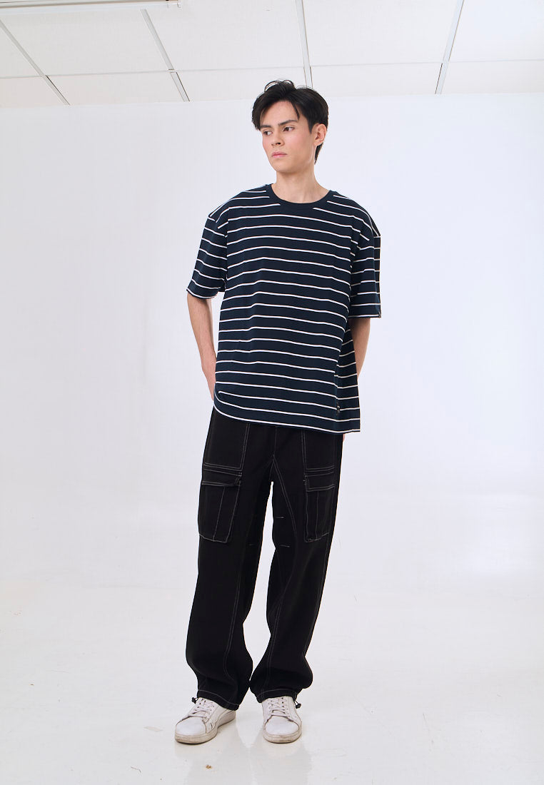 The Mossimo Raxon Navy White Stripes Modern Fit Tee offers a sleek, contemporary silhouette designed for comfort and style. Crafted with high-quality fabrics, it ensures breathability and durability for everyday wear. The classic navy and white stripe pattern adds a refined touch, making it versatile for casual and semi-formal occasions.