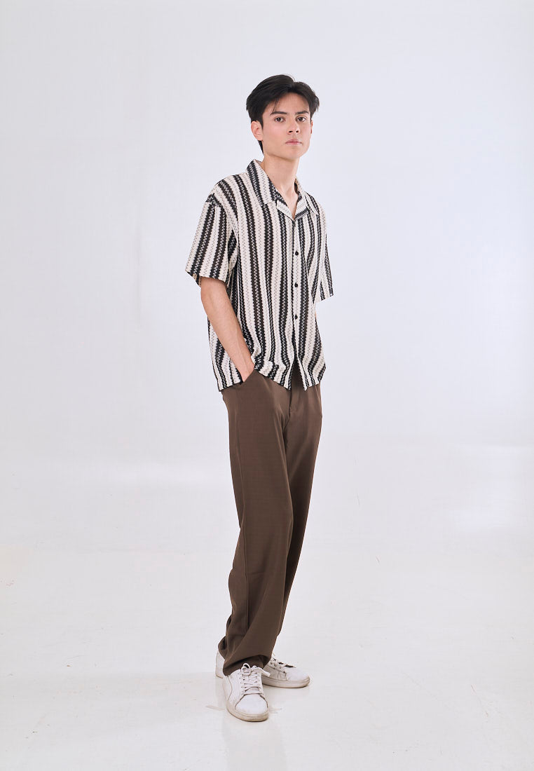 Mossimo Roger Black White Boxy Woven Short Sleeves The Roger shirt delivers effortless versatility with its distinctive boxy silhouette and crisp woven construction. Crafted in a timeless black and white colorway, this short-sleeved piece transitions seamlessly from casual weekends to smart-casual occasions.